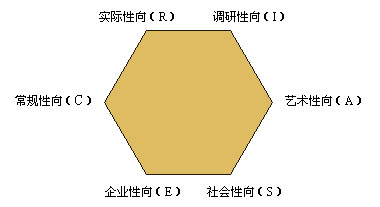 霍兰德所划分的六大类型,并非是并列的、有着明晰的边界的。他以六边形标示出六大类型的关系。